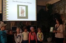 На литературный час пригласила воспитанников ДОУ детская библиотека. Библиотекарь Марготнова И. показала детям презентацию о творчестве Л.Толстого..