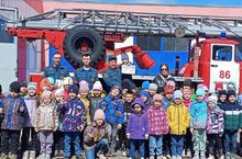 сегодня в день пожарной охраны России, воспитанники подготовительных групп отправились на экскурсию в ПЧ - 86 города Менделеевска.