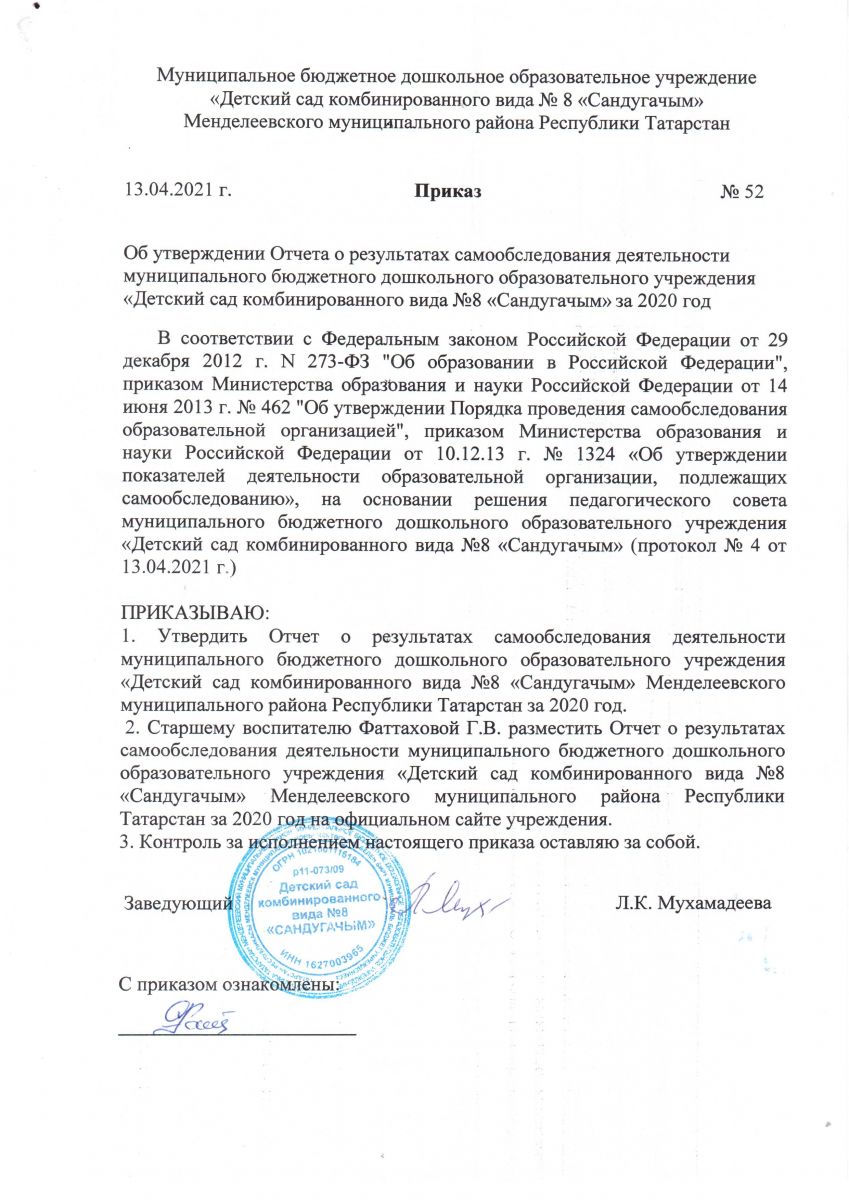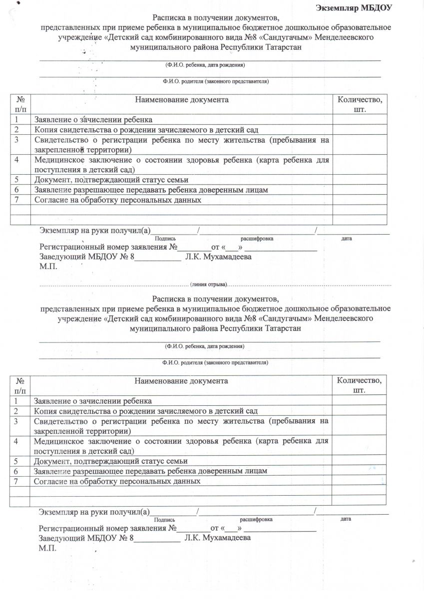 - Положение о порядке оформления возникновения, приостановления и прекращения отношений между муниципальным бюджетным дошкольным образовательным учреждением «Детский сад комбинированного вида № 8 «Сандугачым» Менделеевского муниципального района Республики Татарстан (МБДОУ «Детский сад №8») и родителями (законными представителями) обучающихся.