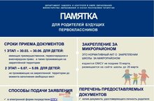 Прием в 1 класс на 2023-2024 учебный год 01.04.2023 Прием заявлений в первый класс для граждан, проживающих на закрепленной территории, начинается не позднее 30 марта и завершается 30 июня текущего года.Для детей, не проживающих на закрепленной территории, прием заявлений в первый класс начинается с 6 июля текущего года до момента заполнения свободных мест, но не позднее 5 сентября текущего года.