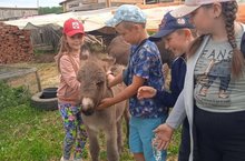 "На ферму к осликам..." 09.06.2021 Ребята из МБОУ "Енабердинская СОШ" в рамках лагеря дневного пребывания посетили ослиную ферму в с. Тойма .