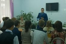 В рамках месячника безопасности прошла встреча обучающихся 8 класса с подполковником юстиции в отставке Зелениным В.Т. ..