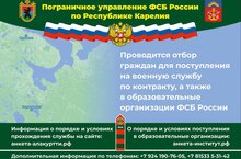 Пограничное управление ФСБ России по Республике Карелия проводит отбор граждан для поступления на военную службу по контракту, а также в образовательные организации ФСБ России...