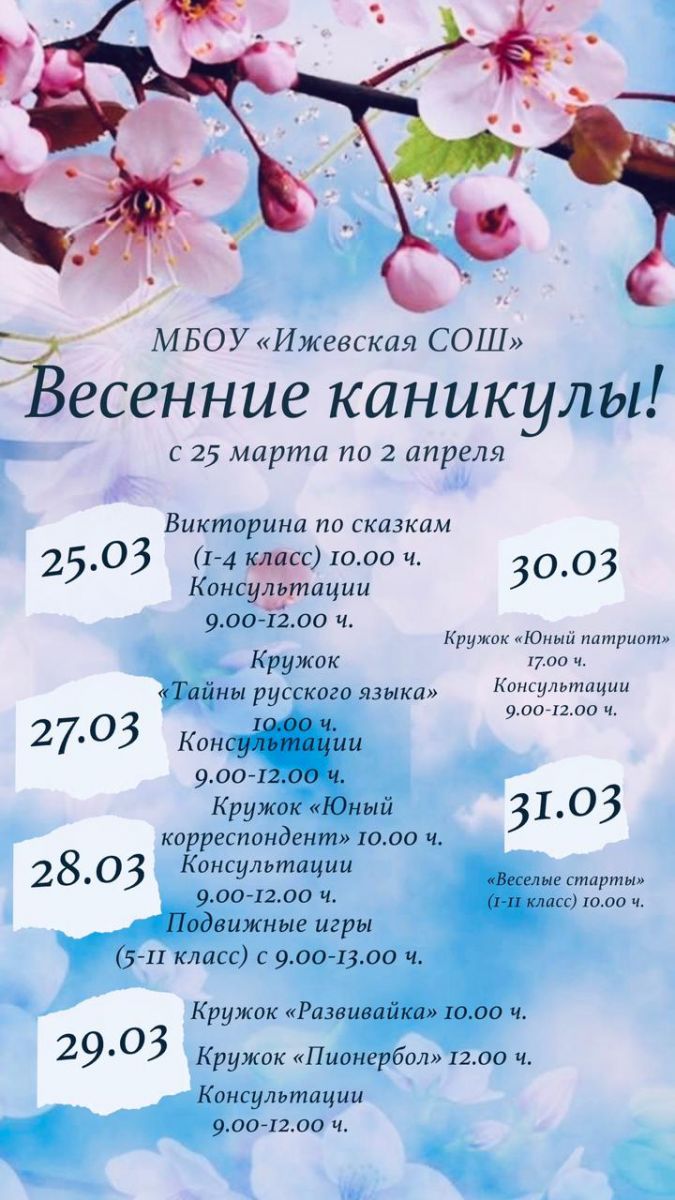 2023 нче елның 23 мартында Ижевка урта гомуми белем бирү мәктәбендә “Язгы каникулда куркынычсызлык кагыйдәләре”