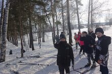 Они сдавали нормы ГТО в дисциплине "Бег на лыжах" (передвижение на лыжах).