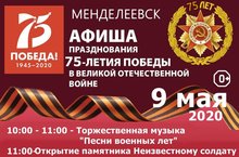 Афиша празднования 75-летия Победы в Великой Отечественной войне 9 мая 2020