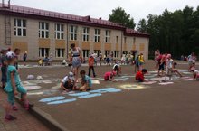 18 июня в пришкольном лагере "Дружба" прошел конкурс рисунков на сафальте на тему "Лето красное будь со мной".