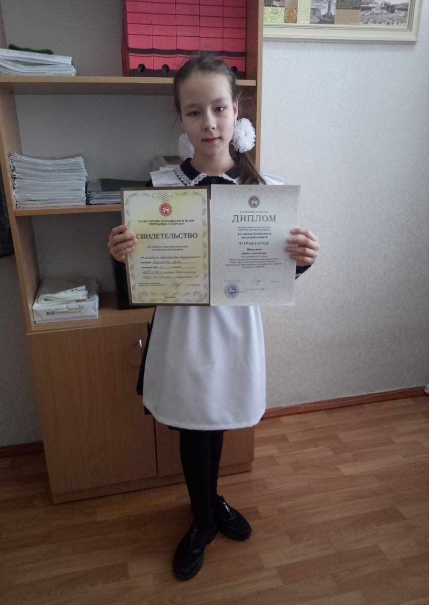 Опубликовано: 03.02.20223 февраля ученица 4Г класса МБОУ «СОШ №1 им. Героя Советского Союза М.С. Фомина г. Менделеевска» Николаева А. приняла участие в заключительном этапе республиканской олимпиады школьников по основам безопасности жизнедеятельности и стала призером олимпиады. Подготовила ученицу учитель начальных классов Г.Н. Бузаджи.