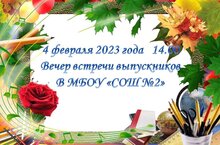 4 февраля 2023 года в актовом зале МБОУ "СОШ №2" состоится встреча выпускников в 14.00...