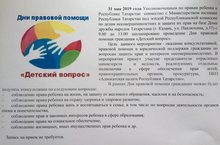 31 мая 2019 года Уполномоченным по правам ребенка в Республике Татарстан совместно с республиканскими министерствами и ведомствами с 10.00 до 13.00 на базе Дома дружбы народов Татарстана (г. Казань, ул. Павлюхина, д.57) запланировано проведение Дня правовой помощи гражданам, приуроченного к Международному Дню защиты детей....