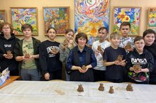 "Пушкин картасы" проекты кысаларында 8А сыйныф укучылары балалар сәнгать мәктәбендә керамика буенча кыңгырау ясау буенча мастер — класска йөрделәр. Мастер-класста катнашучылар балчыктан 2023 ел символы булган хайван-куян яки мәче формасындагы кыңгырау ясаганнар.