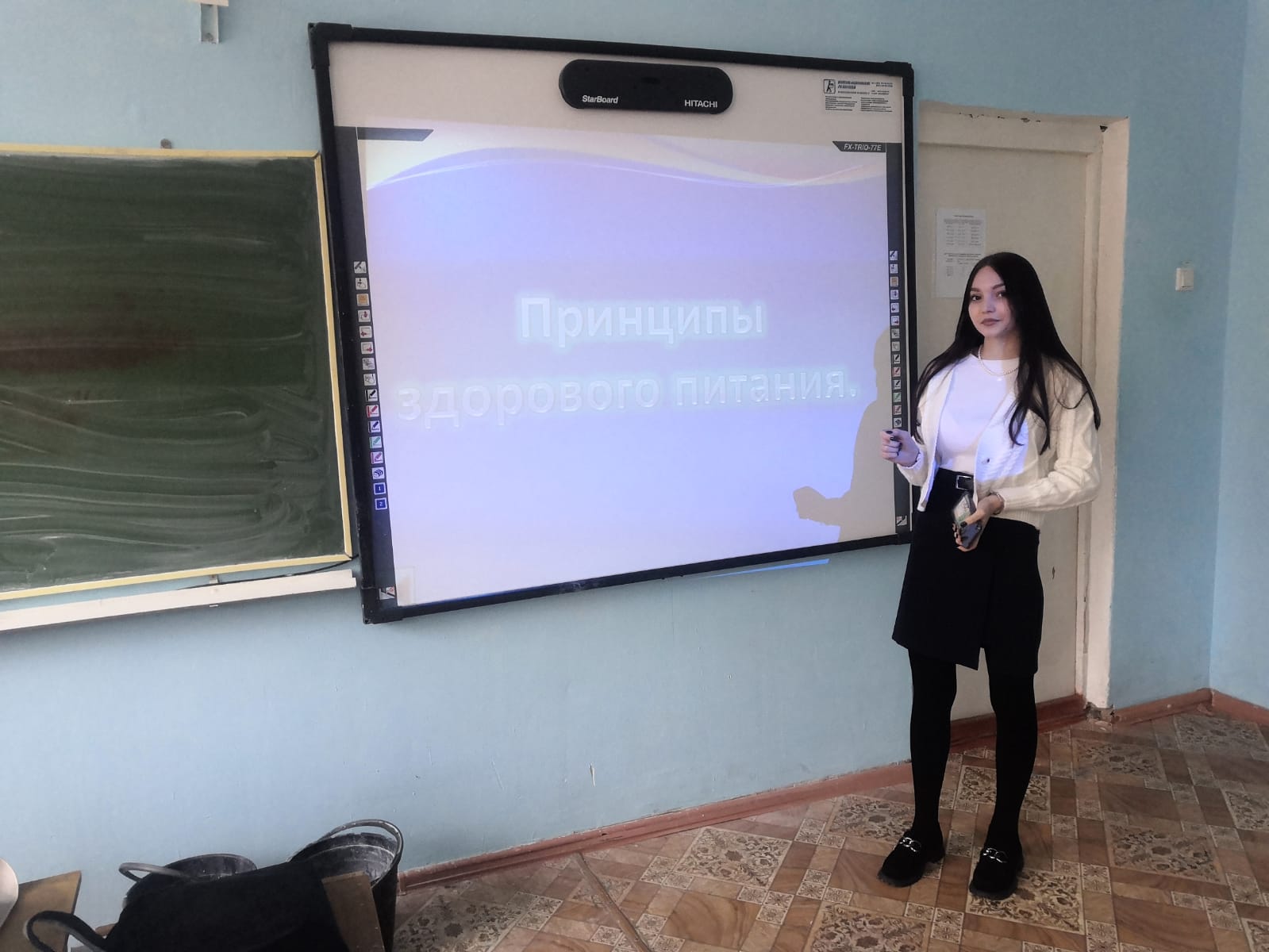 Опубликовано: 24.11.2022В рамках недели здорового питания в нашей школе прошла лекция "Принципы здорового питания" в 9 Б классе. Хасанова Рената рассказала своим одноклассникам что такое здоровое питание, каких принципов нужно придерживаться, чтобы наш организм чувствовал себя комфортно.