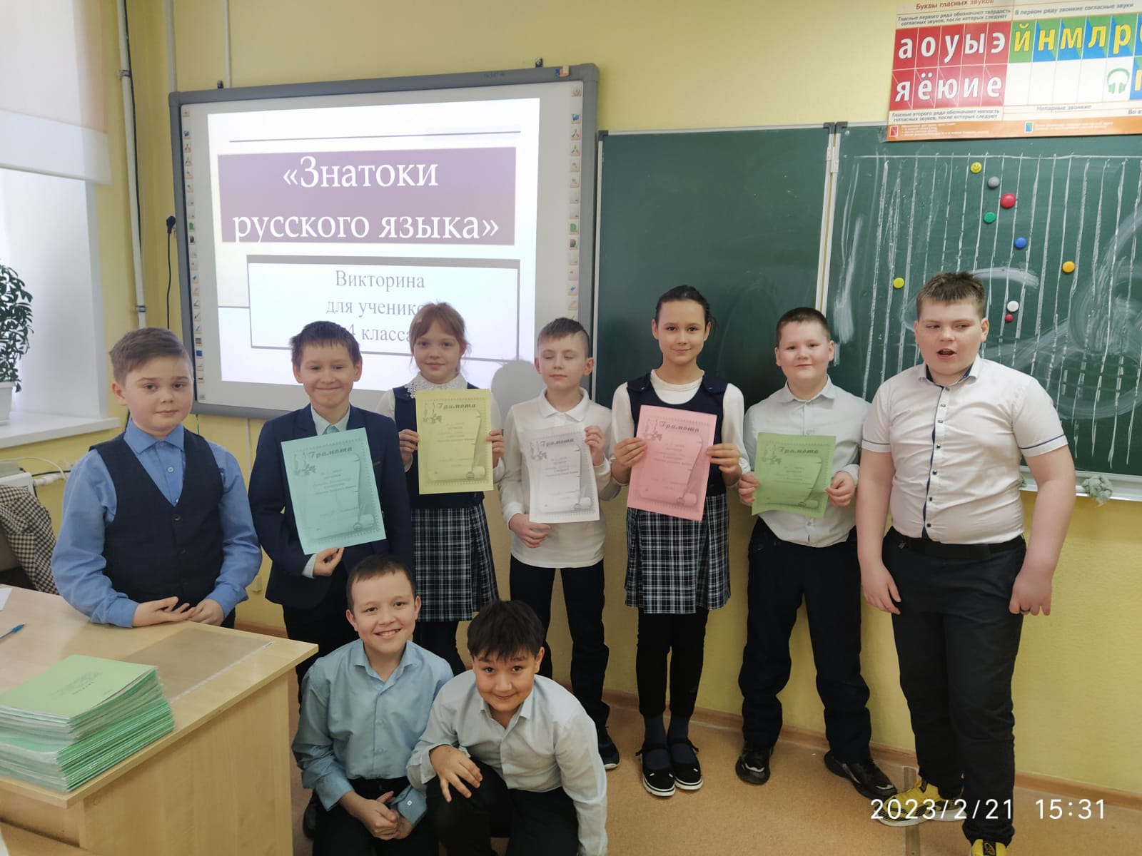 Опубликовано: 21.02.2023В 4А классе сегодня была проведена викторина "Знатоки русского языка", посвященная дню родных языков