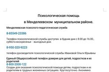 Психологическая помощь в Менделеевском муниципальном районе 23.03.2024