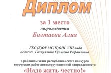 Учащиеся нашей школы приняли активное участие в районном этапе республиканского конкурса творческих работ антикоррупционной направленности "Надо жить честно!"...