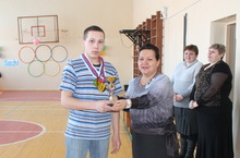 1. ученик 9 кл. Соловьев Алексей в номинациях "Лыжная гонка" и "Армреслинг", кл. рук. Гафиятуллина А.Г.