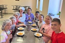 Сегодня воспитанники пришкольного лагеря стали участниками мастер-класса по приготовлению фруктового салата. Руководила процессом повар-кондитер 4 разряда Алина Денисова. Она показала ребятам, как нужно нарезать фрукты, чтобы они оставались сочными и вкусными. Потом готовый салат заправили йогуртом. Дегустаторами стали воспитанники лагеря, которые попробовали готовое блюдо и остались довольны.