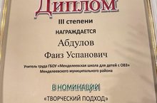 Бүген безнең хезмәттәшебез технология укытучысы Абдулов Фаиз Успанович "иң яхшы җәмәгать тәрбиячесе-2022"конкурсының республика этабында катнашты. Ул "иҗат алымы" номинациясендә җиңде һәм III дәрәҗә Дипломына лаек булды. Котлыйбыз!!!