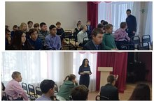 В актовом зале собрались ученики 7, 8, 9а, 9б классов. Ребята посмотрели интервью с известным благотворителем нашей страны киноактером Константином Хабенским, который рассказал, что волонтёром может стать любой желающий независимо от возраста и помогать в свободное от учебы или работы время.
