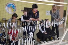 Дети с педагогами МБОУ "Ст-Гришкинской ООШ" плетут сети, помогая тем самым мобилизованным войнам.