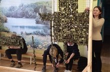 Дети верят, что маленький вклад приблизит бойцов к победе.Цокольный этаж школы похож на цех, где вдоль стены стоит станок, похожий на гигантские пяльцы с натянутой сетью. Так учитель технологии (Суфиева Л. М.) на уроках труда учит патриотизму. Школьники своими руками создают укрытие от прицельного вражеского огня для защитников Родины, среди которых - отцы, братья и земляки. (Тат. Челнинские бойцы СВО).