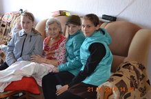 "Якыныңа булыш" акциясе кысаларында башлангыч сыйныф укучылары укытучылары Яковлева Н.Г., Сандакова Т.В., Газейкина Т.М. белән ветеран укытучы Рябова Тамара Степановна янында булдылар.