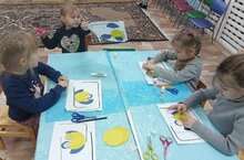 Сегодня ребята оформили поделку птички "Синичка". Синичка яркая, красочная и забавная. Она вестник зимы. Первая прилетает зимовать в наши края и тихо постукивает нам в окошко.