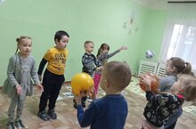 Воспитанники детского сада "Белочка" на физкультуре. Они учатся ловкости - подавать и ловить мячи. Ребятам с большим интересом занимаются, молодцы!