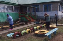 Сотрудники Тихоновского детского сада "Белочка" приняли участие в районном субботнике 05.05.18