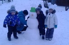 Воспитанники Тихоновского детского сада "Белочка" слепили первого в этом сезоне снеговика.