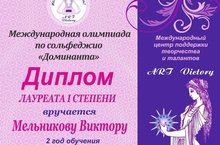 Обучающийся Детской школы искусств Мельников Виктор принял активное участие в Международной олимпиаде по сольфеджио «Доминанта» и получил диплом Лауреата I степени... -
