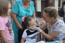 22 июня на площади ДК им. С.Гассара прошло мероприятие, посвященное дню Российского флага. Преподаватели ДШИ Аликина Л.И. и Кузнецова А.А. провели мастер-класс по изготовлению флажков, а также рисовали детям флаги на лицах. Дети были в восторге.