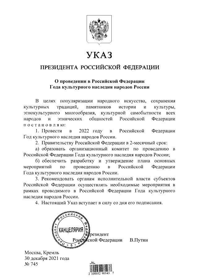 - Указ Президентра Республики Татарстан об объявлении 2021 года в РТ Годом родных языков и народного единства