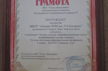Наша школа признана победителем в номинации "Лучшая сельская общеобразовательная школа" муниципального смотра-конкурса "Лучшая подготовка образовательных организаций к новому 2016-2017 учебному году" 15.10.2016