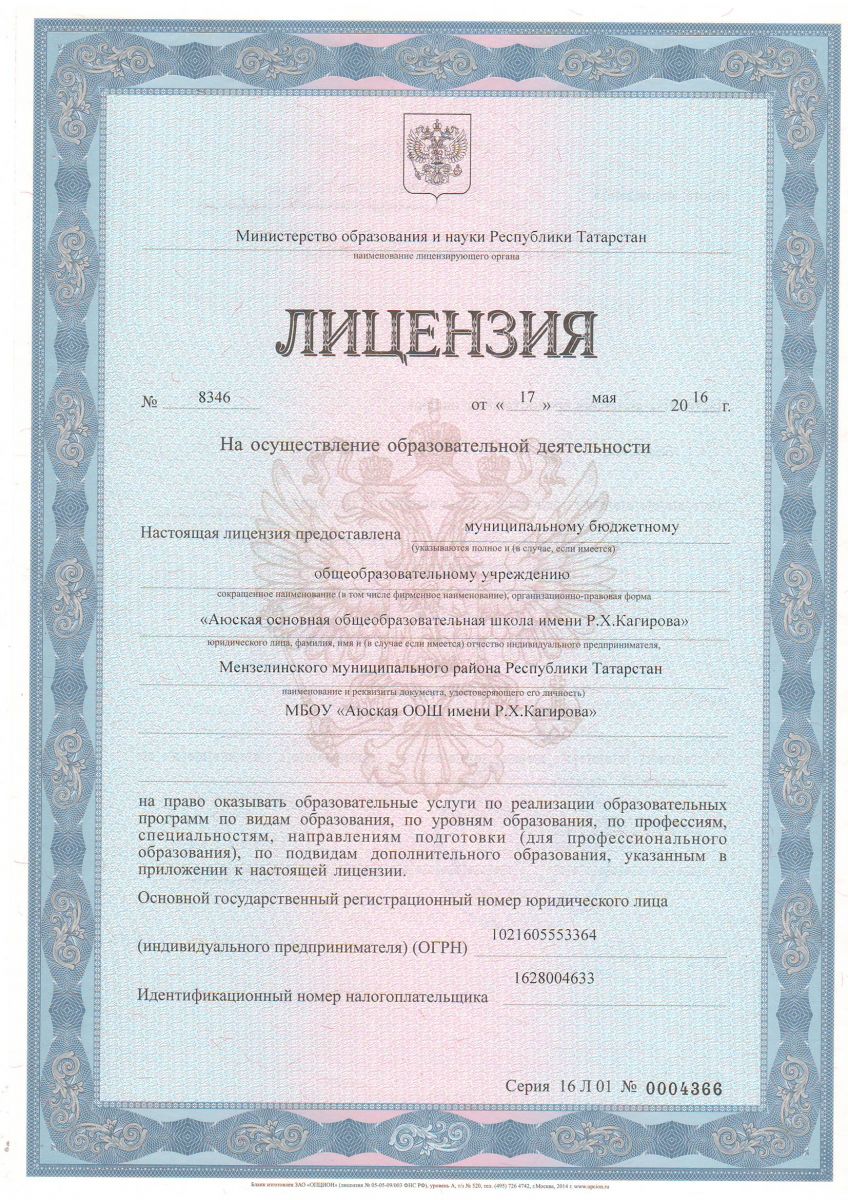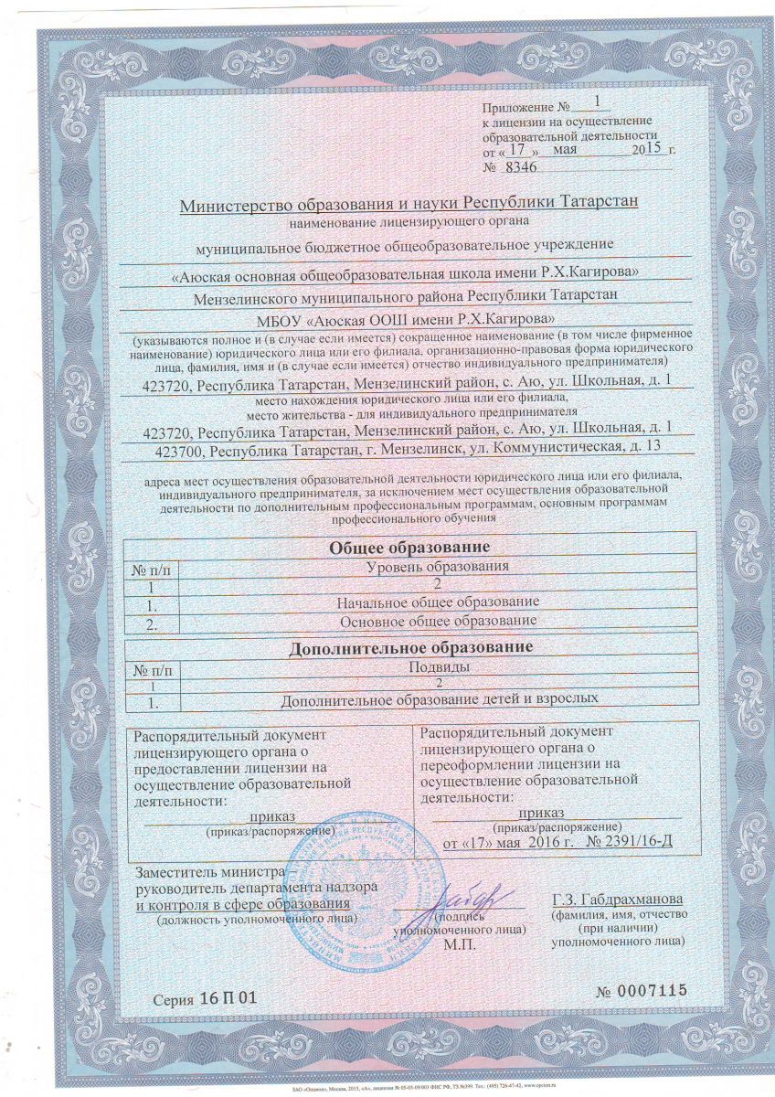 Муниципальное бюджетное общеобразовательное учреждение «Аюская основная общеобразовательная школа имени Р.Х.Кагирова» Мензелинского муниципального района РТ