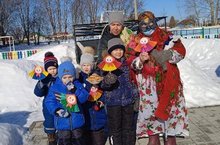 Коллектив детского сада провели праздник для детей. Играли весёлые подвижные игры. Дед мороз пришел со своим другом клоуном. После игр детей угостили блинами.