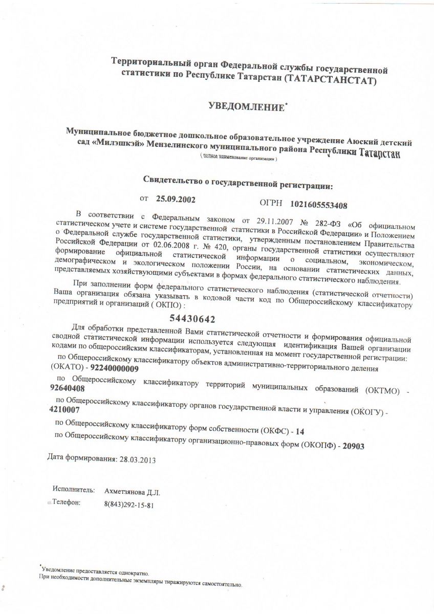 Муниципальное бюджетное дошкольное образовательное учреждение Аюский детский сад «Милэшкэй» Мензелинского муниципального района Республики Татарстан /Татарстан Республикасы Минзәлә муниципаль районы Аю "Миләшкәй" балалар бакчасы мәктәпкәчә белем бирү муниципаль бюджет учреждениесе