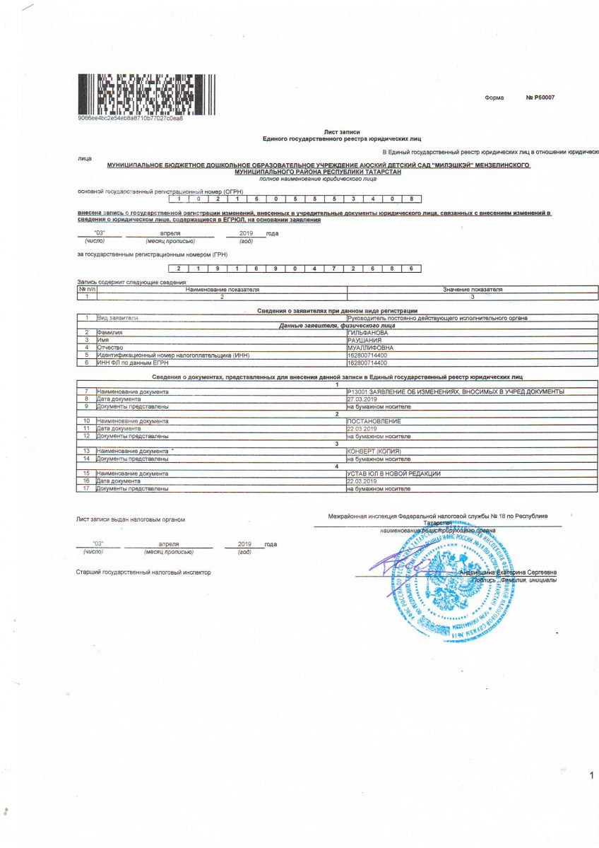 Лист записи ЕГРЮЛ / ЕГРЮЛ язы бите