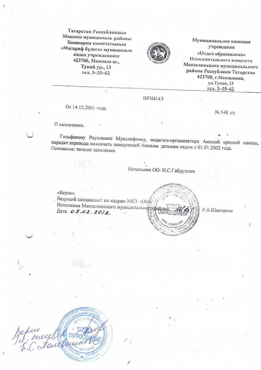 Приказ о назначении \ Боерык итеп билгелэп кую турында