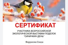 Воспитанники нашего детского сада приняли участие во всероссийской детской онлайн-выставки поделок "Синичкин день" , организованном на портале социально-образовательного проекта "Эколята-дошколята"