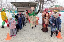 Масленица-праздник, который отмечали ещё наши предки-славяне. Непременными атрибутами веселий, связанных с окончанием холодной поры, являлись румяные и круглолицые блины, символизирующие собой солнце, которое должно было вступить вовремя в свои владения. В дни праздника воспитатели нашего детского сада создали атмосферу поистине народного гуляния. Программа развлечения получилась очень веселой. К ребятам на Масленицу заглянула красавица Весна, Солнышко, скоморохи, которые под звуки русской музыки устроили для всех ребят соревнования. Как положено на празднике, дети от души веселились: водили хоровод вокруг масленицы, пели русскую народную песню "Блины", частушки, скоморохи исполняли потешки.
