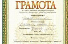 Воспитанники нашей подготовительной группы стали победителями Республиканской олимпиады для дошкольников "Ученый малыш", организованной Республиканским олимпиадным центром министерства образования и науки Республики Татарстан