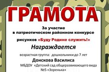 Воспитанники детского сада приняли активное участие в патриотическом районном конкурсе рисунков "Буду Родине служить!" организатором которого было киноучреждение г. Мензелинска.