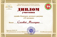 Воспитанники детского сада приняли участие в республиканском конкурсе детских рисунков "12 месяцев ", проводимом Министерством культуры Республики Татарстан ГБУК РТ "Республиканской детской библиотекой" г.Казань