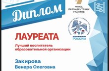 Наш воспитатель Закирова Венера Олеговна стала лауреатом федерального этапа VIII Всероссийского конкурса «Воспитатели России» в номинации «Лучший воспитатель образовательной организации»