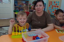 Благодаря Фонду президенских грантов у детей есть возможность знакомиться с основами понятий по геометрии. С помощью набора «Логические блоки», в который входят 60 элементов, дети классифицируют их по признакам: цвет, форма, размер (большие и маленькие), ширина (узкие и широкие). С помощью этих элементов можно решать задачи на развитие логики в духе «найти лишний предмет». Например, квадрат в ряду треугольников, синюю фигурку среди множества красных и т.д