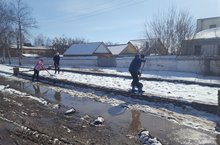 В связи с весенними паводками коллектив детского сада принял меры по очистке водоотведений от снега. Были очищенны канавы и подходы к ним, убран снег вокруг здания детского сада.