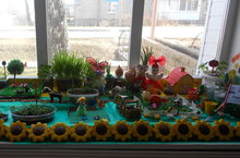 В детском саду прошел смотр - конкурс "Огород на окне". Воспитатели проявили свое творчество совместно с родителями и оформили огороды на окне: высадили лук с отметкой в календаре, овес, огурцы, рассаду цветов, помидоров, перца, различные виды зелени. Этой рассадой мы воспользуемся для бизнес плана детского сада в мае месяце уже в настоящем огороде. Защитили свои проекты стихами на русском и татарском языках.