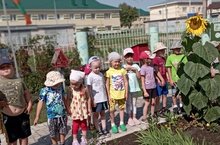 Сегодня для средней и старшей группы была организована прогулка по площадке, где дети наблюдали как растут подсолнухи. Во время беседы дети обсудили, как растёт, какую окраску и форму имеет.Кояш астында көнбагыш, көнбагыш йомшак булганда, көне буе кояшка карый үзе аңа охшаган! Чәчәк бал кортларын үзенә чакыра; үләндә грабли чума. Ә кояш йөзә, алтын кораб кебек йөзә. Һәркемнең үз вакыты бар, үз тормышы гади генә бара көнбагыш иртәдән кояшка алтын карап тора. Кояш корабы йөзә, нур тирәли боҗра белән! Көнбагыш аның йөзендә тора!