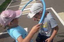 В нашем МБДОУ№ 7провели КВН по ПДД «Наша безопасность » -участвовали две команды: «Светофорики» и «Пешеходики». В первом конкурсе дети играли в дидактическую игру «Собери транспорт». Вторым конкурсом дети отвечали на вопросы викторины «Правила движения». Угадывали дорожные знаки. Дальше были проведены подвижные игры: «Трамваи», «Грузовики», «Чья команда первая». В гости к детям приходили Бабя-Яга с Лешием, которые нарушали правила дорожного движения, но наши дети научили их правильно и безопасно вести себя на проезжей части. В конце развлечения провели танцевальный флешмоб «Самолетики» Детям остались очень довольны. В конце победила дружба.